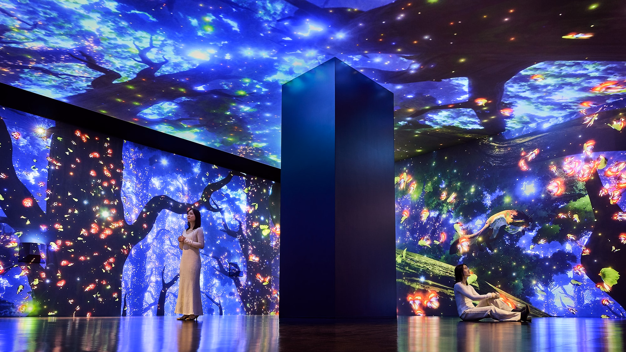夕方以降は来場者が少なく、映像空間をゆっくり体験しやすい時間帯。